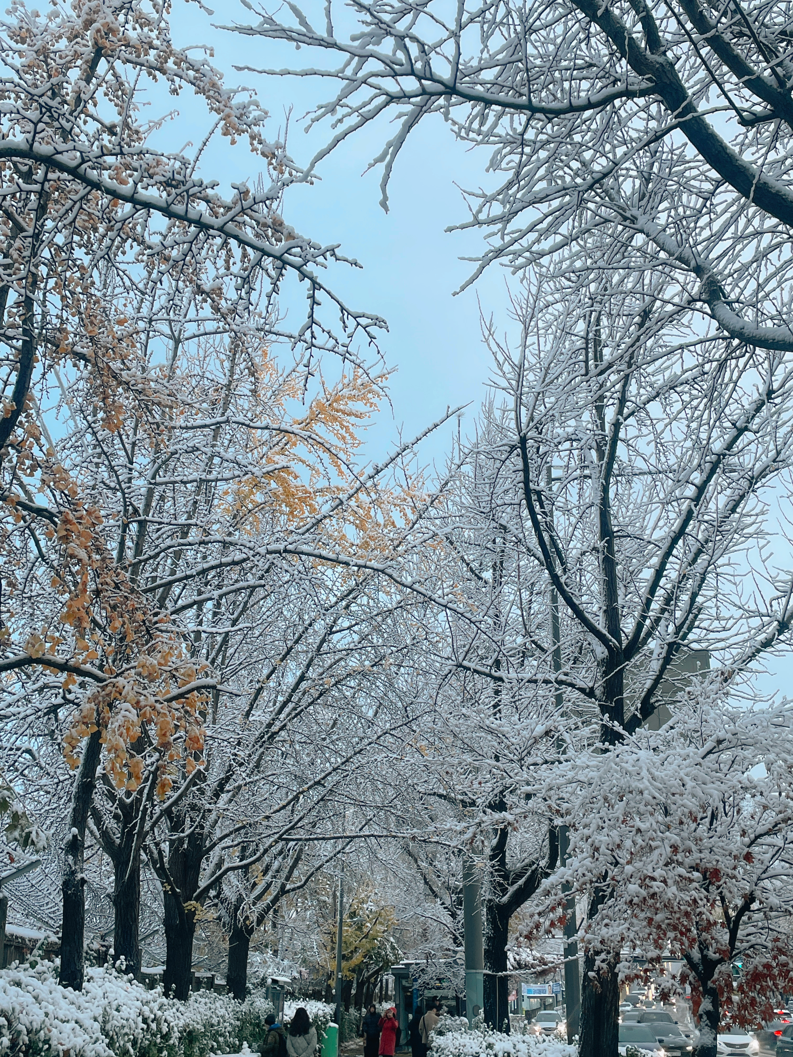 단풍과 눈의 조합이라니...